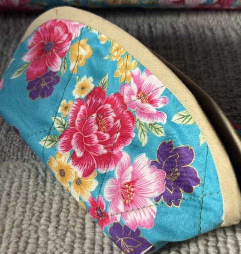 母の入院中に実家で見つけた客家花布のポーチ。私が台南の生地店で購入し、母にお土産としてあげた布で母が作ったもの。座布団カバーとクッションカバ···