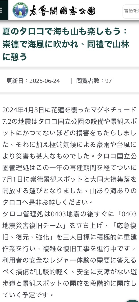 太魯閣国立公園 一部の遊歩道開放&生態保護区入園可能!少しずつ規制解除されているタロコ