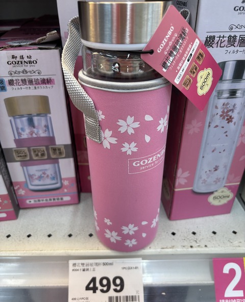 春を感じるガラス製水筒 台湾カルフールで499元タンブラー