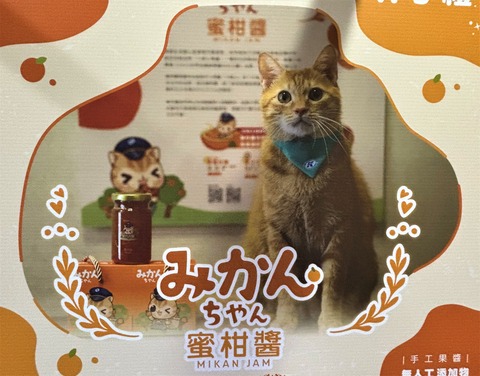 高雄MRT前金駅コンコースで、にゃんこの可愛いポスターを発見。ポスターには『みかんちゃん 蜜柑醤 MIKAN JAM』とある。ポスターを読んでみる···