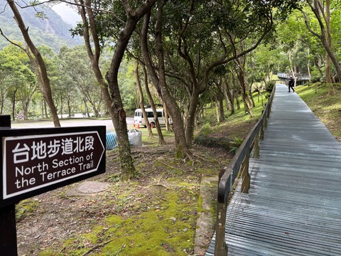 徒歩で回れるコースをインフォメーションで聞くと、駐車場脇の「太魯閣台地歩道北段」だけとのことなので、歩いてみることに(2025年5月初旬時点)。···