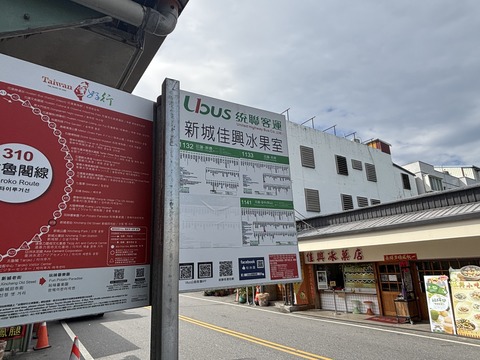 「太魯閣」バス停から太魯閣線310の台湾好行バスに揺られること約20分。降り立ったのは「新城佳興冰果室」バス停。付近一帯は「新城老街」となってい···