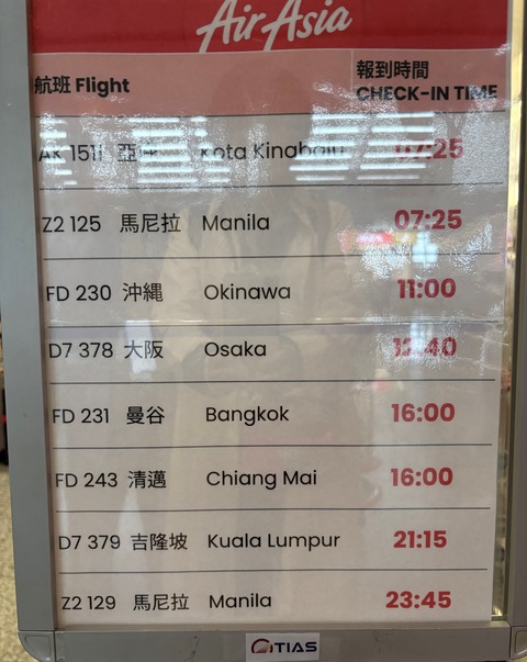 エアアジアで桃園→那覇 チェックインは2.5H前&機内持ち込みの計量はキャリーケースのみ